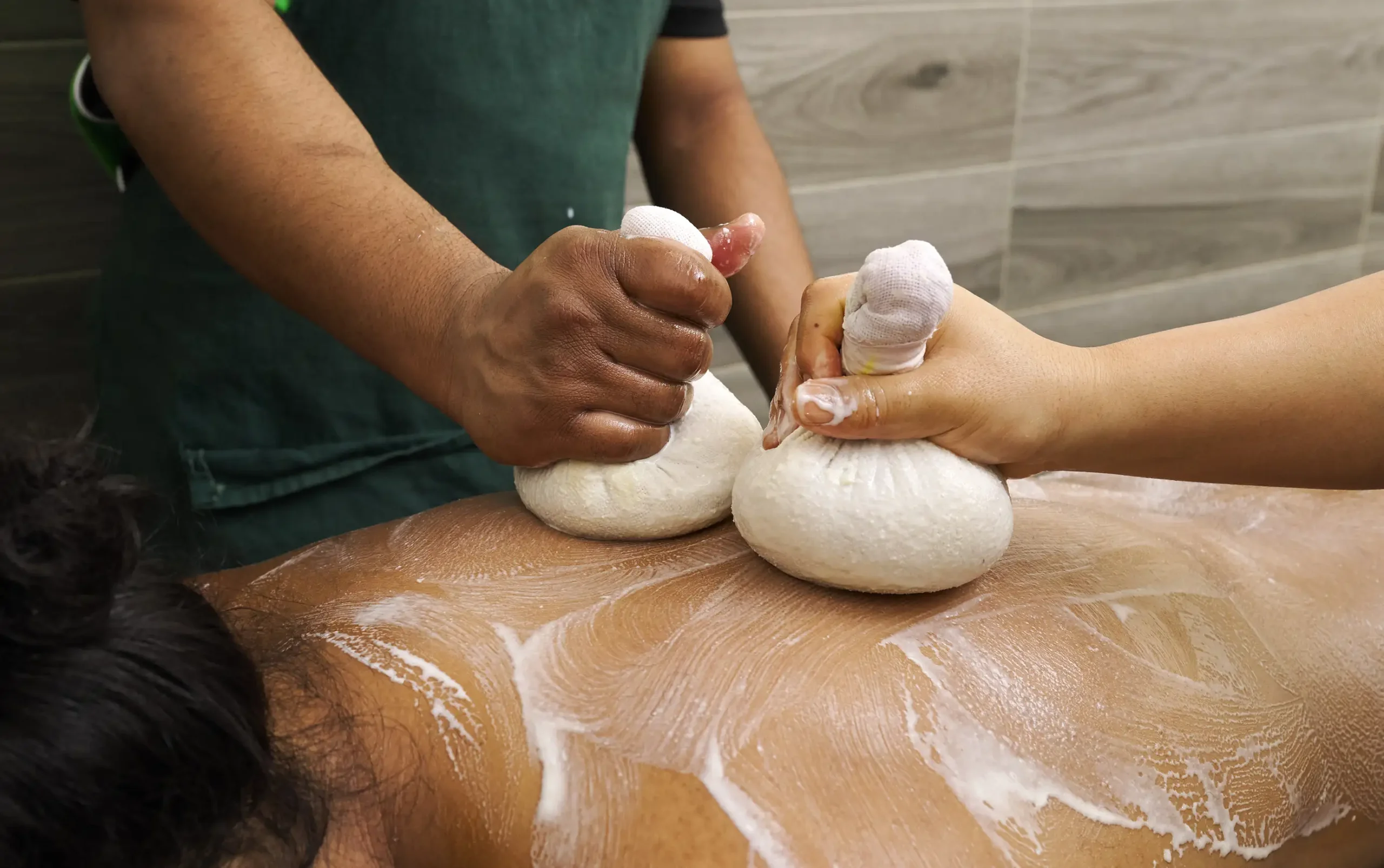 Njavarakizhi is a traditional Ayurvedic therapy using warm herbal rice bundles applied with rhythmic Ayurvedic massage therapy techniques. Rooted in Ayurveda, the treatment provides warmth and relaxation and may include gentle stimulation of marma therapy points.