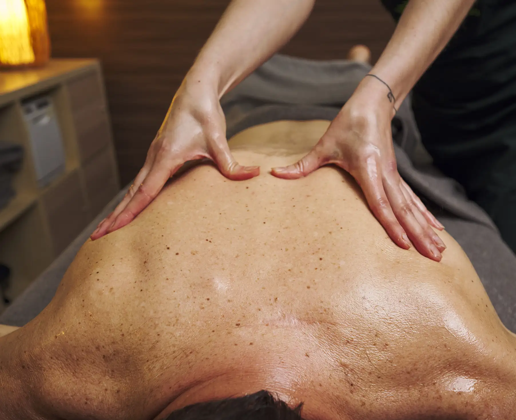 Warm oils may be used to help moisturise the skin and enhance the massage experience.